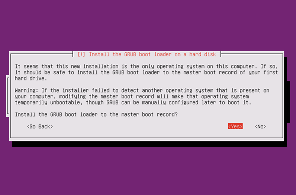 GRUB install sorusuna da yes dediğimizde sistemimiz kurulmuş olacaktır.