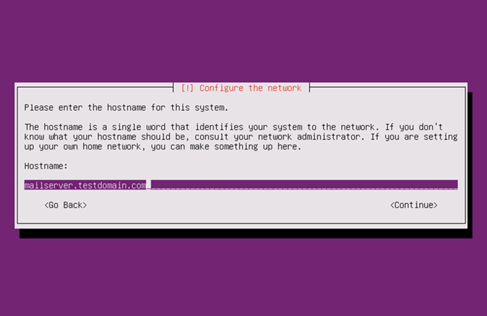 Bir sonraki adım önemli bir adım. Burada sunucumuza isim vereceğiz burada bir mail server kuracağımız için verdiğiniz isim makineadı.domain.suffix olarak girilmeli örneğin; mailserver.testdomain.local gibi
