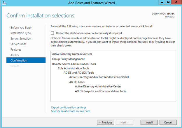 Confirm Installation Selections da INSTALL düğmesine tıklayarak kurulumu başlatabilirsiniz. İsterseniz “Restart the destination Server automatically if required” a checkbox ına tıklayarak, Server ın kurulumdan sonra restart etmesini sağlayabilirsiniz.