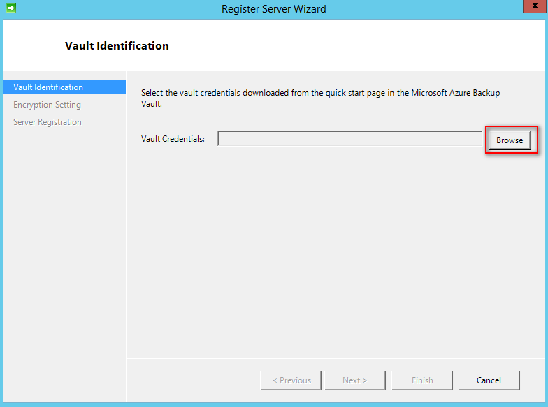 Azure Site Recovery Register ile Azure Backup Register aynı şekilde yapılmaktadır. O yüzden Vault Identification ekranında Microsoft Azure Backup yazdığı şaşırmayınız. Daha önceden SCVMM Provider için kullandığımız Registration key dosyasını burada da kullanıyor olacağız.