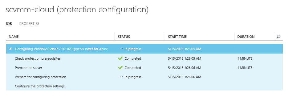 Replikasyon ayarlarını kaydettikten sonra gerekli konfigürasyon ayarları tamamlanmıştır. Site Recovery Vault üzerindeki JOBS ekranı altında adım adım işlemleri görebilirsiniz.