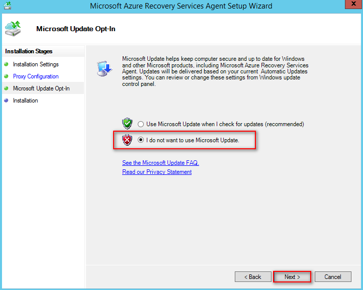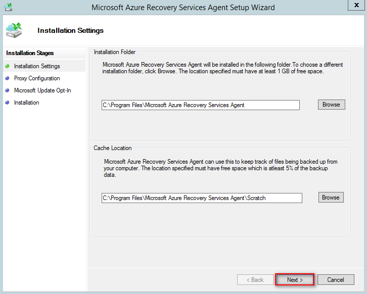 Hyper-V Host sunucu üzerinde Download etmiş olduğumuz MARS Agent Setup dosyasını çalıştırıyoruz.