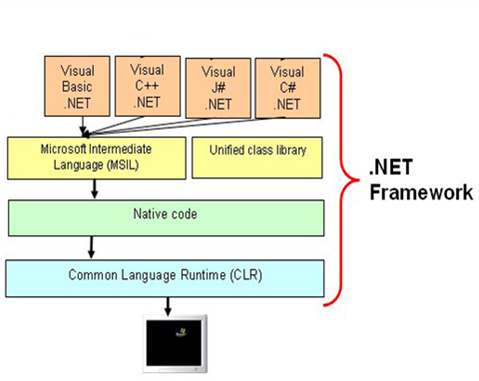 Kodlar MSIL (Microsoft Intermediate Language) yapısına çevirilir. Bu kod işlemci tarafından tanınan bir kod yapısı değildir ve direk olarak çalıştırılamaz. Kodu çalıştırılabilir hale getiren CLR(Common Language Runtime) yapısıdır.Yazılan kodlar .NET framework olan bütün bilgisayarlarda çalışır durumdadır ayrıca .NET ortamında bir projeyi iki veya daha fazla dil ile ortak yazabilirsiniz. CLR ve .NET ortamı hakkında bilgi almak için ;