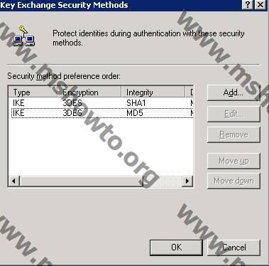 11) Security method preference order bölümündeki IKE DES MD5 ve IKE DES SHA1 güvenlik metotlarını Remove tuşuna basarak kaldırın.
