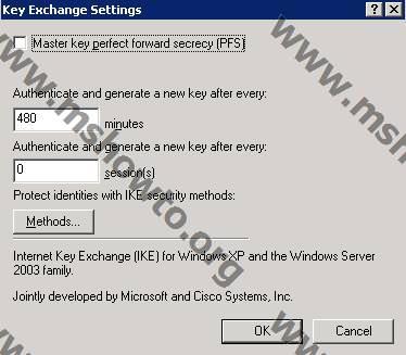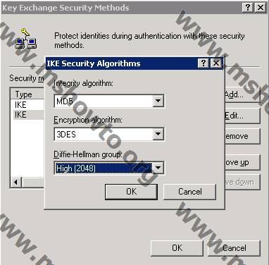ü Maximum güvenlik için, 2048 bitlik şifrelemeyi kullanın. Unutulmaması gereken bir konu da 2048 bitlik şifreleme yani Deffie-Helman Group 2048, yalnızca Windows Server 2003 ve 2008 işletim sistemlerinde kullanılabilir. Windows 2000 ve Windows XP işletim sistemlerinin bu özelliği yoktur. Windows 2000 ya da Windows XP ile 1024 bitlik Group 2 kullanılabilir.