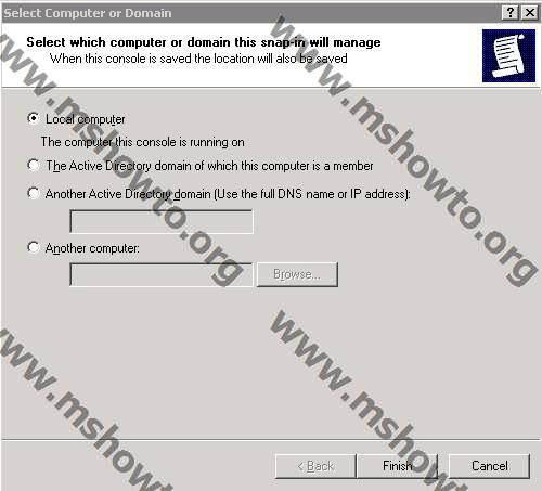 2) Local Computer kutucuğunu işaretleyin ve Finish tuşuna basın.