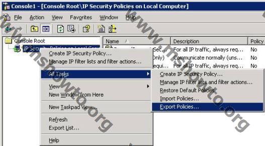 21) IP Security Policies on Local Computer’e sağ tıklayın ve All Tasks bölümünden Export Policies seçeneğine tıklayın. All Tasks seçeneğinden Export Policies seçeneğine tıklayın.