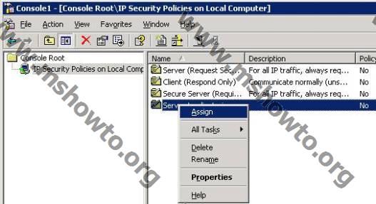 25) Pc’lerden birinde server-to-client ping policy’sinin üzerine sağ tıklayıp Assign tuşuna basın.