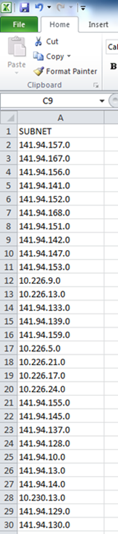 Öncelikle yapılması gereken var olan subnetleri içeren bir Excel dosyasının oluşturulmasıdır.