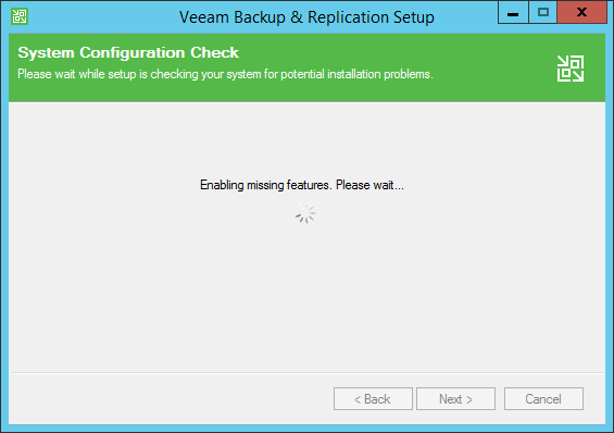 Veeam Backup & Replication v9.5 Update 4 kurulumu için gerekli olan ve işletim sistemi üzerinde kurulu olmayan yazılımların kurulumuna başlanıyor.