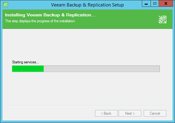 Veeam Backup & Replication v9.5 Update 4 kurulumu tamamlanıyor Veeam Backup & Replication v9.5 Update 4 servislerinin Start services… olduğunu görüyoruz.
