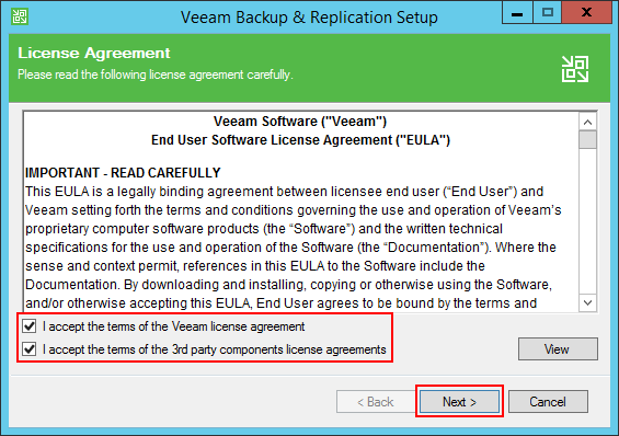 License Agreement ekranında Veeam Backup & Replication v9.5 Update 4 kurulumu için I accept the terms in the license agreement diyerek lisans sözleşmesini kabul ediyoruz. Next diyerek devam ediyoruz.