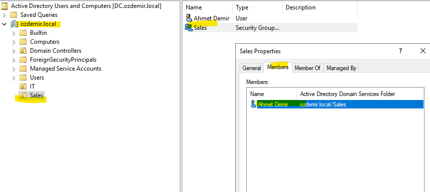 Öncesinde ben burda tanımlamarızı grup bazın da yapmanızı öneririm. Örnek aşağıdaki gibi bir grup oluşturup ilgili kullanıcıları grup içersine ekleyerek gerekli tanımlamaları burdan yapabilirsiniz.