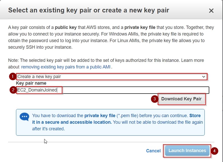 - Server’a bağlanmak için yeni bir “key pair” oluşturup indiriyoruz.