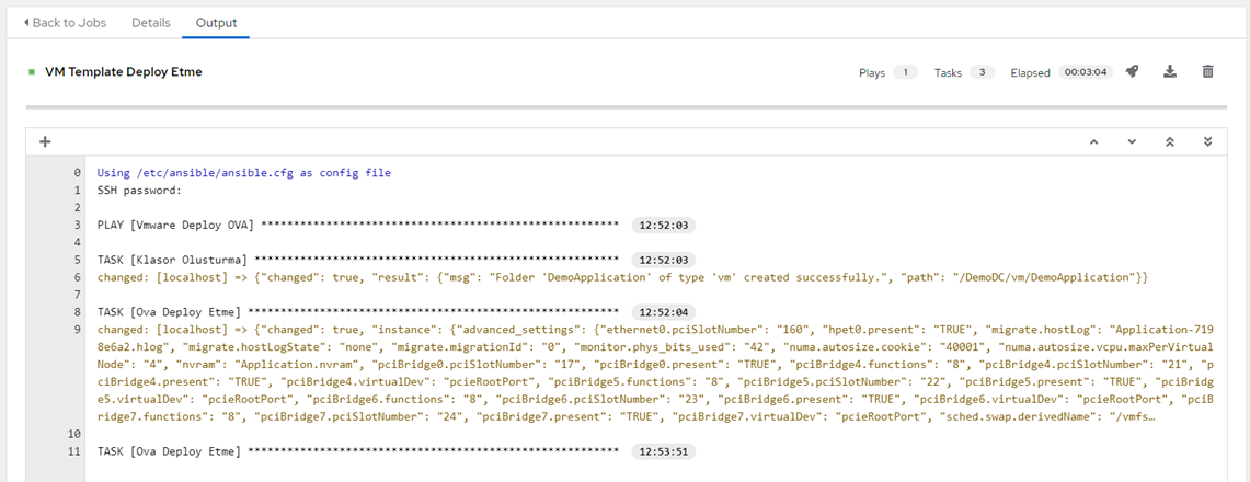 delegate_to: localhostSonrasında ise Sunucularımızı Deploy ediyoruz. Hazırladığımız template olarak kullanılacak ova dosyasını sunucu üzerinde bir path’e atarak playbook üzerinde tanımlamanız gerekiyor. Ben burada path olarak /var/lib/awx/template.ova verdim.