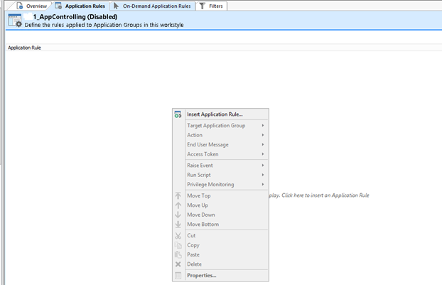 Insert Application Rule diyerek işlemimize başlıyoruz. Tüm kuralları elle tanımlamamıza gerek yok diğer workstyle lardan kopyala yapıştır ile alabiliyoruz.