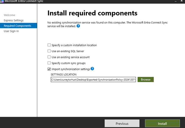 İhtiyacımız olan dosyaları ve configleri aldık. Şimdi yeni sunucumuza geçiyoruz ve Entra Connect’i kuruyoruz. Öncelikle aşağıdaki linkten Entra Connect’i indiriyoruz.