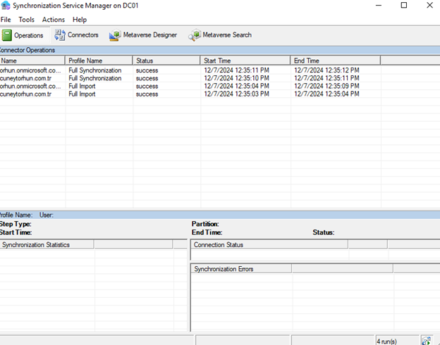 Sync işleminin başarılı bir şekilde tamamlandığını gördük. Yukarıda Profile Name sütununda export olmadığı taktirde bu objeler Entra ID ye gönderilmez.