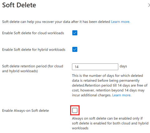 Soft delete özelliği sayesinde, bir yedekleme öğesi Azure Backup servisinden silindiğinde, veriler hemen fiziksel olarak silinmez. Bunun yerine, silinmiş olarak işaretlenir ve belirli bir süre boyunca (varsayılan olarak 14 gün) kurtarılabilir durumda tutulur. Bu süre zarfında, kullanıcılar yanlışlıkla silinen verileri kolayca kurtarabilir.