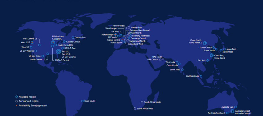 Bildiğiniz gibi Azure Region dediğimiz şey, Microsoft’un dünya üzerinde 54 lokasyonda (bu sayı git gide artıyor) kurduğu veri merkezleri anlamına gelir. Ülkemizde şu anda bir veri merkezi bulunmuyor. O yüzden bize en yakın olan veri merkezlerini genel olarak kullanıyoruz.
