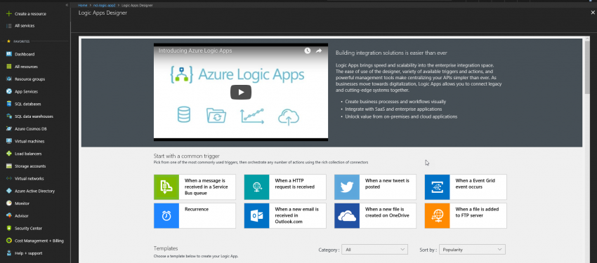 Azure Logic App bir çok bulut servisi (Twitter, Rss, Gmail, Mailchimp vs.) ile entegre çalışabildiği gibi aynı zamanda Azure servisleri için de bir çok opsiyon sunmaktadır.