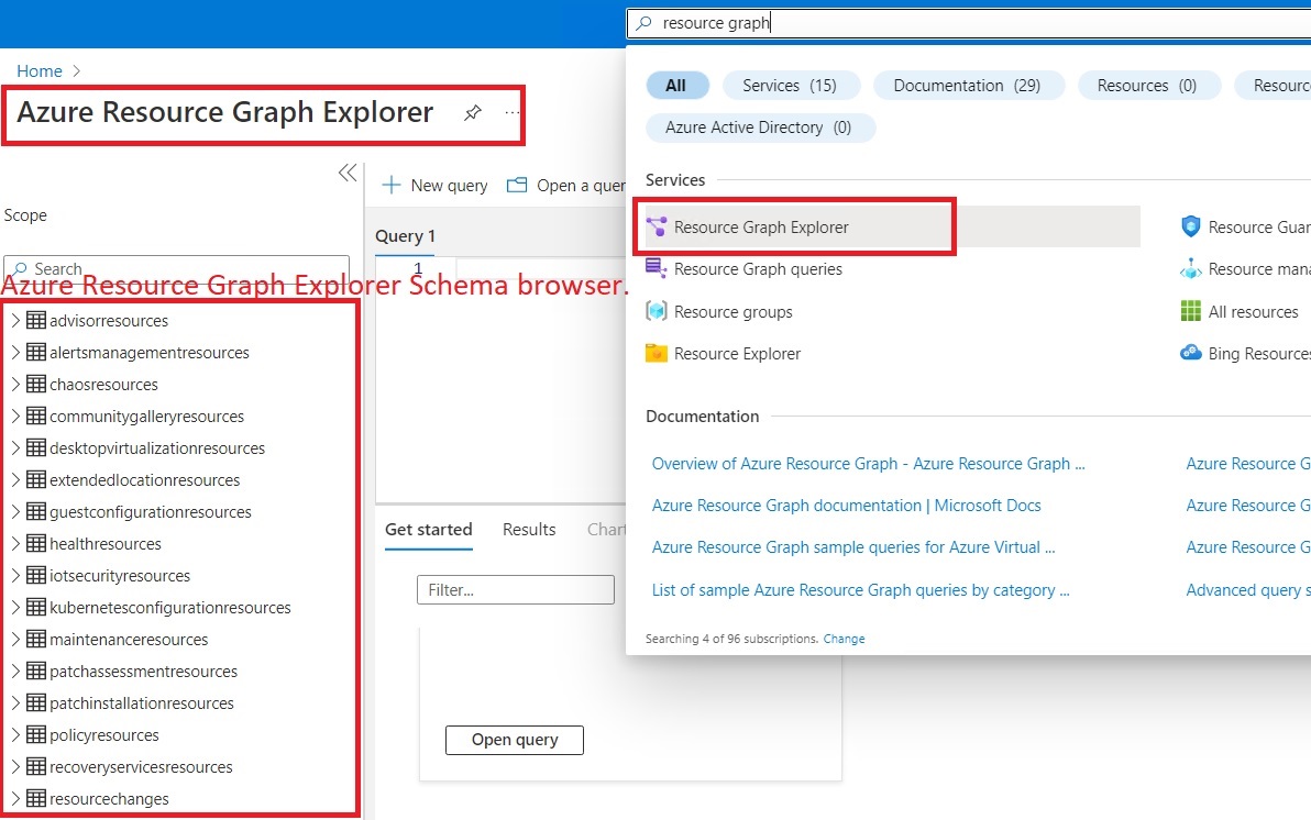 * Azure portal ve Resource Graph Explorer