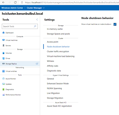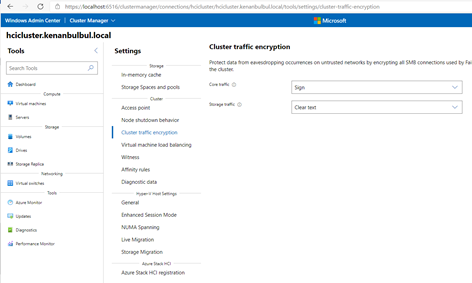 Cluster başlığı altında ise Azure Stack HCI’n kurulu olduğu cluster servisi ayarlarını görebiliriz.