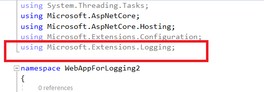 Şimdi öncelikle burada loglama’yı etkinleştirmek için aşağıdaki şekilde belirttiğim kodu CreateWebHostBuilder metoduna ekleyelim.