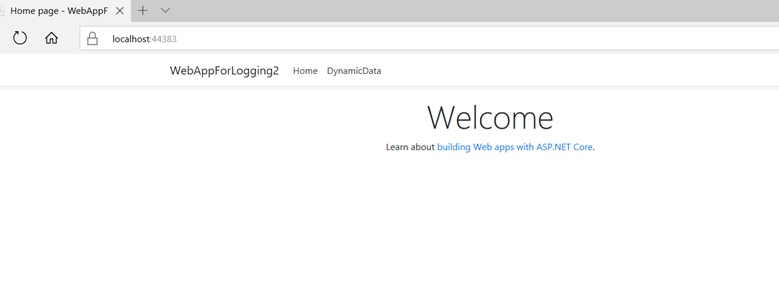 DynamicData isimli sayfayı kontrol ettiğinizde test mesajı aşağıdaki gibi görüntülenecektir. Bu sayfayı çağırdığınızda OnGet() metodu çağrılacağı için bu metod içerisine eklediğimiz loglar visual studio konsolunda output olarak görünecektir.