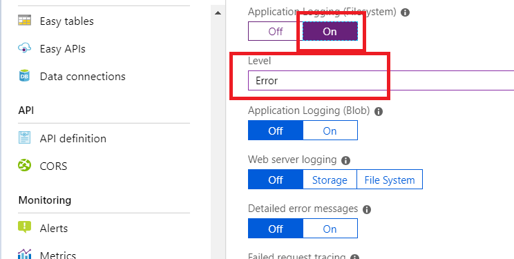 https://docs.microsoft.com/en-us/azure/app-service/troubleshoot-diagnostic-logs