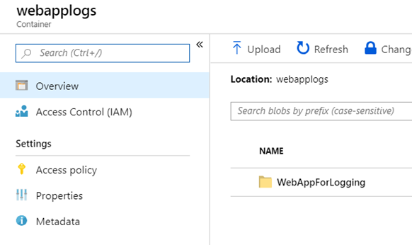 Bu işlemlerin ardından konfigürasyonu kaydettikten sonra yine web uygulamanızı browse edip dynamicdata isimli sayfaya istek göndererek loglama işlemini tetikleyebiliriz. Bu işlemlerin ardından blob storage üzerindeki container’ı kontrol ettiğinizde web uygulamasının isminde bir klasörün oluştuğunu görebilirsiniz. Bu klasörün içerisinde tarih bazlı dizin oluşturarak loglama işlemi yapılacaktır.