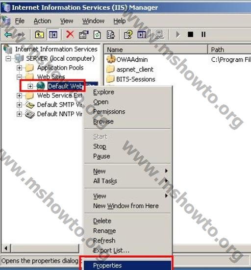 7.) Internet Information Services yönetim konsolunda Web Sites altında hizmet veren Default Web Site özelliklerine gelinir,