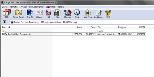 İndirdiğimiz ön izleme paketinin uzantısı .vsix uzantılıdır yani tıklayıp kurulum işlemini otomatik yapabilmekteyiz. Kurulum işlemini yapalım.