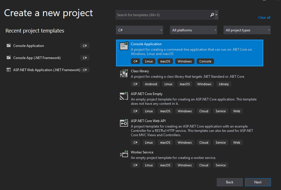 Projemize bir isim verelim ve Create seçeneği ile devam edelim.