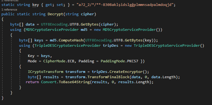 Şifre işlemlerini çözerken yine belirlemiş olduğumuz Key değerinden yararlanarak MD5 ile ilgili işlemleri sınıfın içerisinde halledip işlemlerimizi gerçekleştiriyoruz.