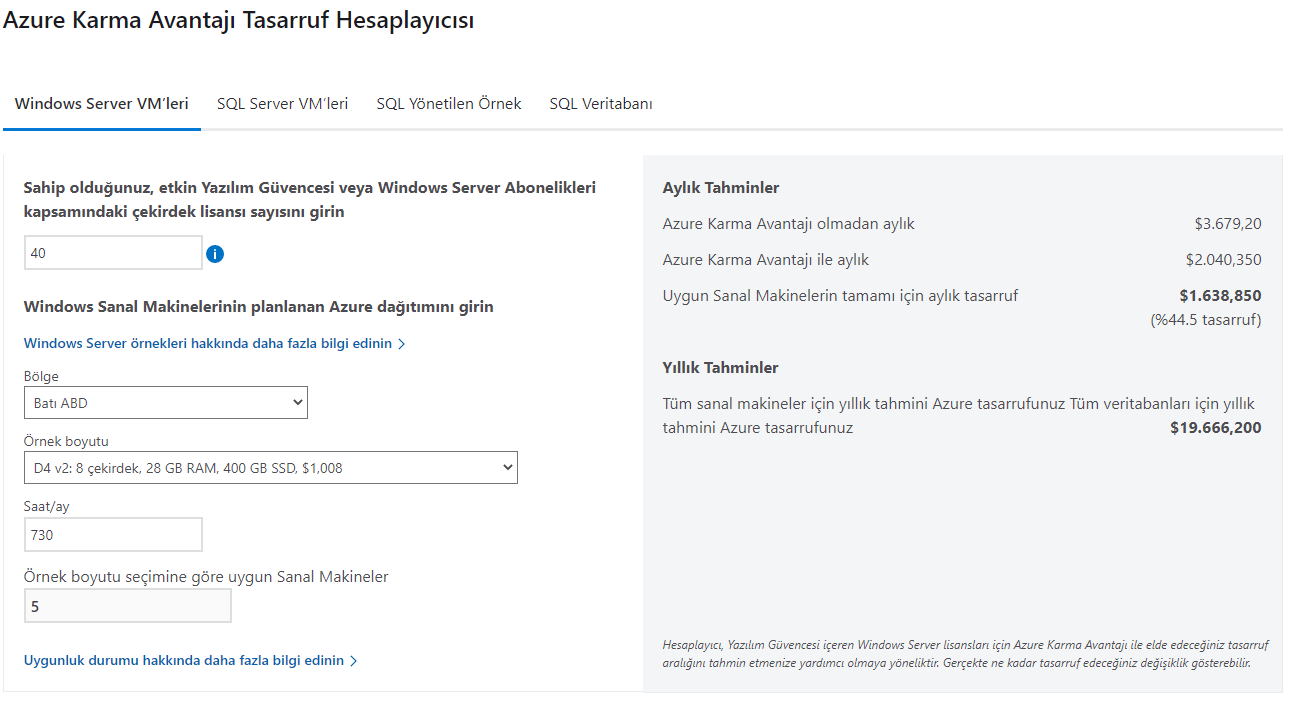 Önceki yıllarda mshowto’da Azure Sanal Makine Maliyetlerinizi Düşürmeye Yarayan Püf Noktalar adında bir makale yazmış orada birçok püf noktaya değinmiştim. Bugün ise yukarıdaki bölümde bahsettiğim gibi Azure Hybrid Benefit’ten bahsedeceğim. Öncelikle Azure Hybrid Benefit nedir sizlere birkez daha bu avantajı açıklamak istiyorum. Yazılım güvencesi (SA) etkin olan Microsoft müşterilerinin Azure üzerinde çalıştıracakları Windows Server, SQL Server iş yüklerini Azure’da kullanabilmelerine olanak kılan ve böylelikle bulutta kullanım maliyetlerini önemli ölçüde düşürmelerini sağlayan bir lisanlama avantajıdır. Aşağıdaki ekran görüntüsünden de görebileceğiniz gibi ilgili lisansınıza ait çekirdek sayınıza göre değişen oradan bir indirim hakkına sahip olabilirsiniz. Bu konuda son bir bilgi daha vermek isterim, Azure Hybrid Benefit ilk yıllarda sadece Windows Server iş yüklerinde geçerli iken artık SUSE Linux vee Redhat abonelikleri için de geçerli olmaya başlamıştır.