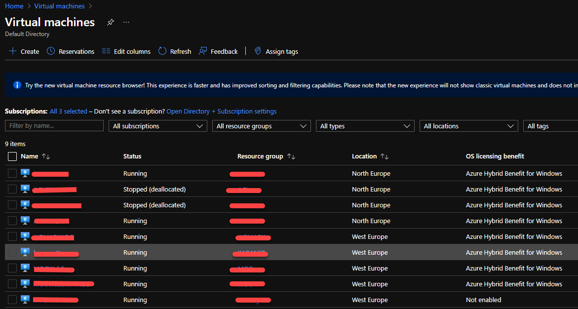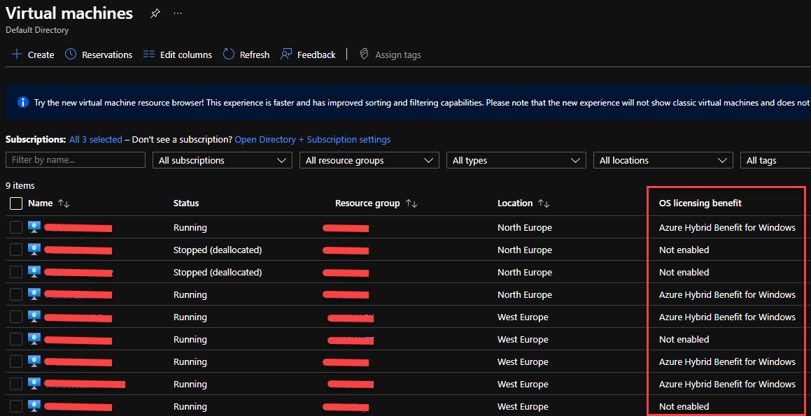 OS licesing benefit sütununu ekledik, artık hangi sanal makinelerde etkin hangilerinde Azure Hybrid Benefit’in etkin olmadığını görebiliyoruz.