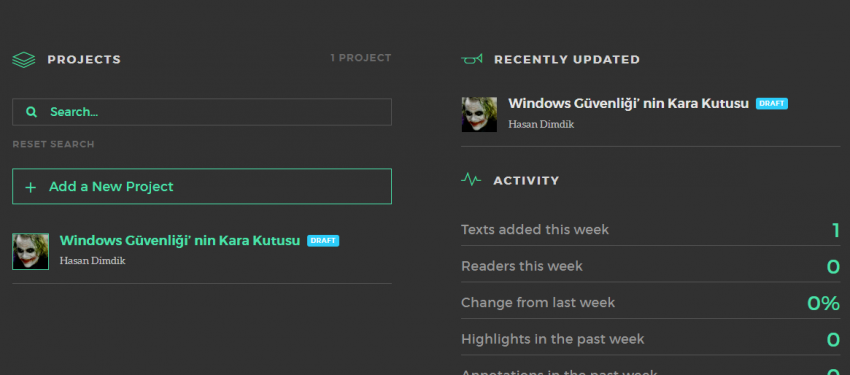 Önemli yerleri ise highlight ile işaretleyebiliyorsunuz yine bu özellik medium.com’dan tanıdık geliyor.