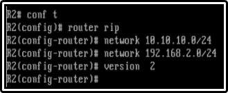 R1 Routerımız 192.168.2.0 networkunu RIP aracılığı ile enp0s8 interface’inden ve 10.10.10.2 networkü üzerinden öğrenmiş. 120 RIP in Administrative Distance değeri 2 hop uzaklıkta olduğunu söylüyor.
