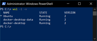 Resim-6‘da göreceğiniz gibi herhangi bir problem görünmüyor. Burada daha önceden kurduğumuz Ubuntu dışında docker-desktop-data ve docker-desktop adında 2 tane daha Linux dağıtımı olduğunu görebilirsiniz. Buradaki docker-desktop Hyper-V yerine kullanılıyor; docker-desktop-data’yı ise VHD (Virtual Hard Disk) olarak düşünebiliriz.