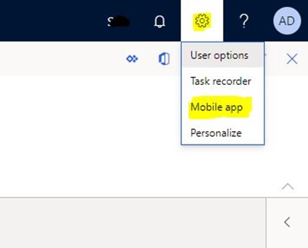 Öncelikle Dynamics 365 Finance and Operations giriş yapıyoruz. Ayarlar kısmından Mobile app‘e tıklıyoruz.