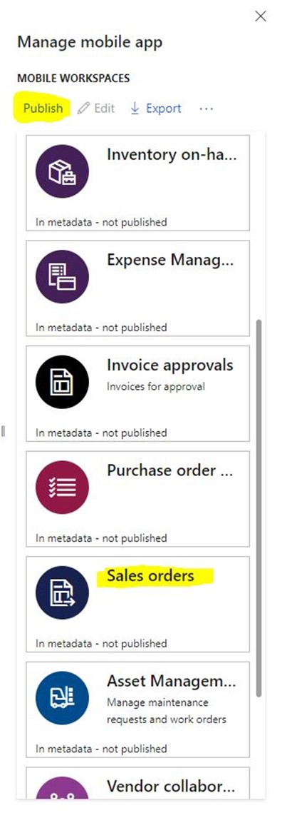 Hazırda gelen mobile uygulamalar listelenecek. İstedikleriniz seçip Publish edebilirsiniz.