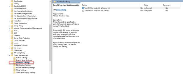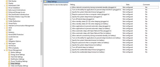 Bu bölümde Power management için kullanacağımız Group Policy’lere detaylı olarak değineceğiz. Power Management Group Policy alanı aşağıdaki policy konfigürasyonlarına sahip.