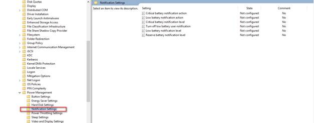 Notification settings kısmında 2 koşulumuz var bunlardan biri low battery durumu diğeri ise critical battery durumu. Buradaki thresoldları battery notification level sekmesinden yüzde olarak ayarlayabiliriz. Örneğin %5 olduğunda ciritical olsun % 15 olduğunda low battery notification olsun ve bu thresoldlara erişildiğinde hangi aksiyonların alınacağını belirleyebiliyoruz.