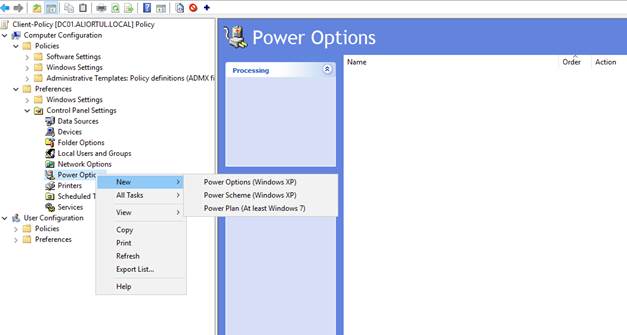 Bir önceki makalemizde clientlarımız için bir group policy oluşturmuştuk veya sizin kullanacağınız bir group policy olabilir. Oraya gidiyoruz ve specific bir power plan oluşturuyoruz.