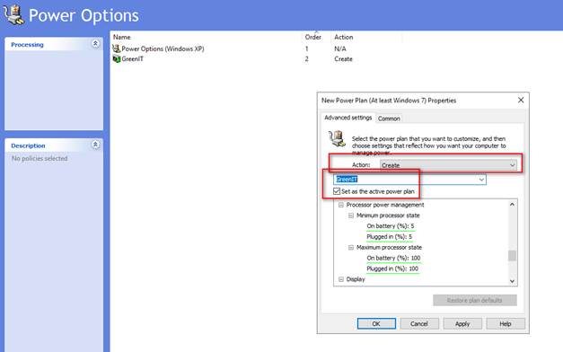 Set as the active power plan : Bu seçeneği işaretlediğinizde mevcut policy alacak tüm cihazlarda, yapılandırdığınız konfigürasyon aktif olacaktır.