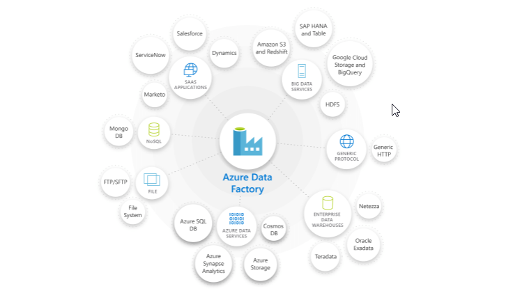 Avantajları sadece ölçeklenebilir ve Code-Free olması değil elbette. Azure Data Factory, barındırdığı geniş bağlantı seçenekleri sayesinde; NoSQL sistemler, Big Data servisleri ve File formatındaki veri kaynakları gibi birçok veri kaynağına bağlanabileceğiniz bir çalışma ortamı sunuyor. Büyük çaplı projelerde onlarca farklı veri kaynağına aynı anda bağlanmak gerektiğinde Data Factory’nin bu zenginliği ciddi bir avantaj sağlıyor diyebiliriz.