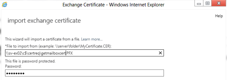 Import Exchange Certificate işlemini başlatıp biraz önce girdiğimiz bilgileri tekrar giriyoruz.