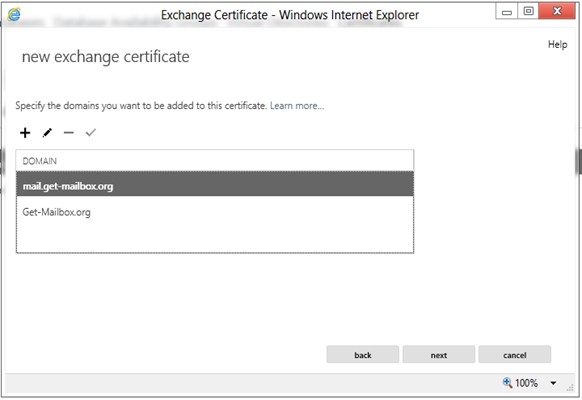 EAC’ye ilk eriştiğimizde Sertifika hatası almıştık. Bu bölümde amacımız hem iç hem dışarıdan erişimlerde virtual directory adreslerini tek bir adres olarak yapılandırmak. Bunun için mail.get-mailbox.org adresini kullanmaya çalışacağız. Outlook clientlarımızda aynı virtual directory adreslerini kullanarak bağlanacaklarından sertifika ayarları bizim için büyük önem taşıyor.