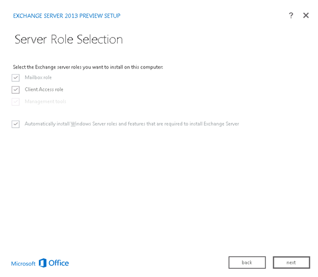 Kurmak istediğiniz rolleri seçin. Görüldüğü gibi artık HUB rolü bulunmuyor. Yine daha önceki yazılarımdan bir tanesinde HUB rolünün artık MB rolü içerisinde bir servis olarak çalıştığını açıklamıştım. Dilerseniz rolleri ayrı ayrı da kurabilirsiniz fakat biz bu yazımızda tek sunuculu bir ortam yaratmaya çalıştığımız için iki kutucuğu da seçerek devam ediyoruz.